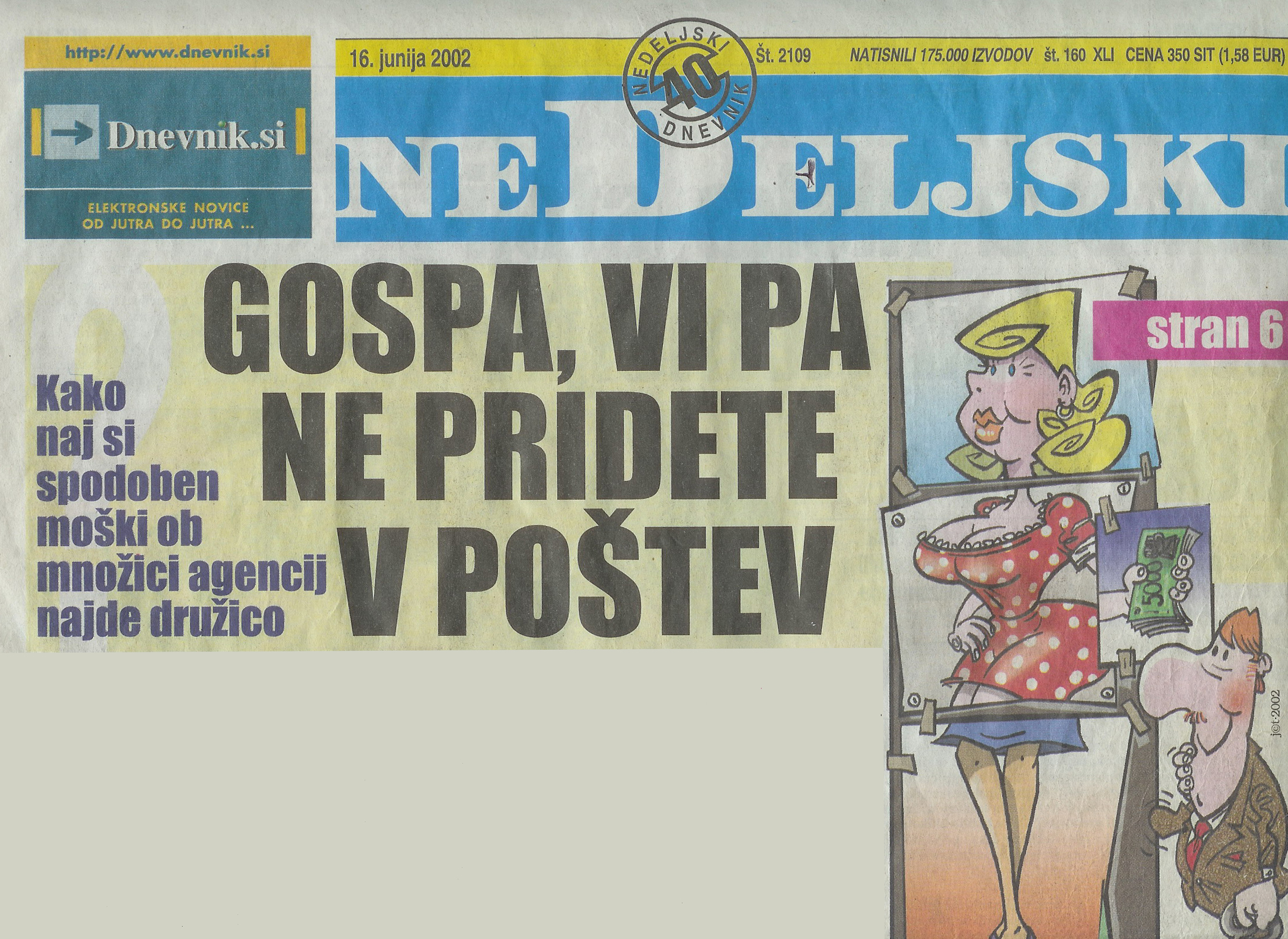 Časopis Nedeljski dnevnik: "Gospa, vi pa ne pridete v poštev"