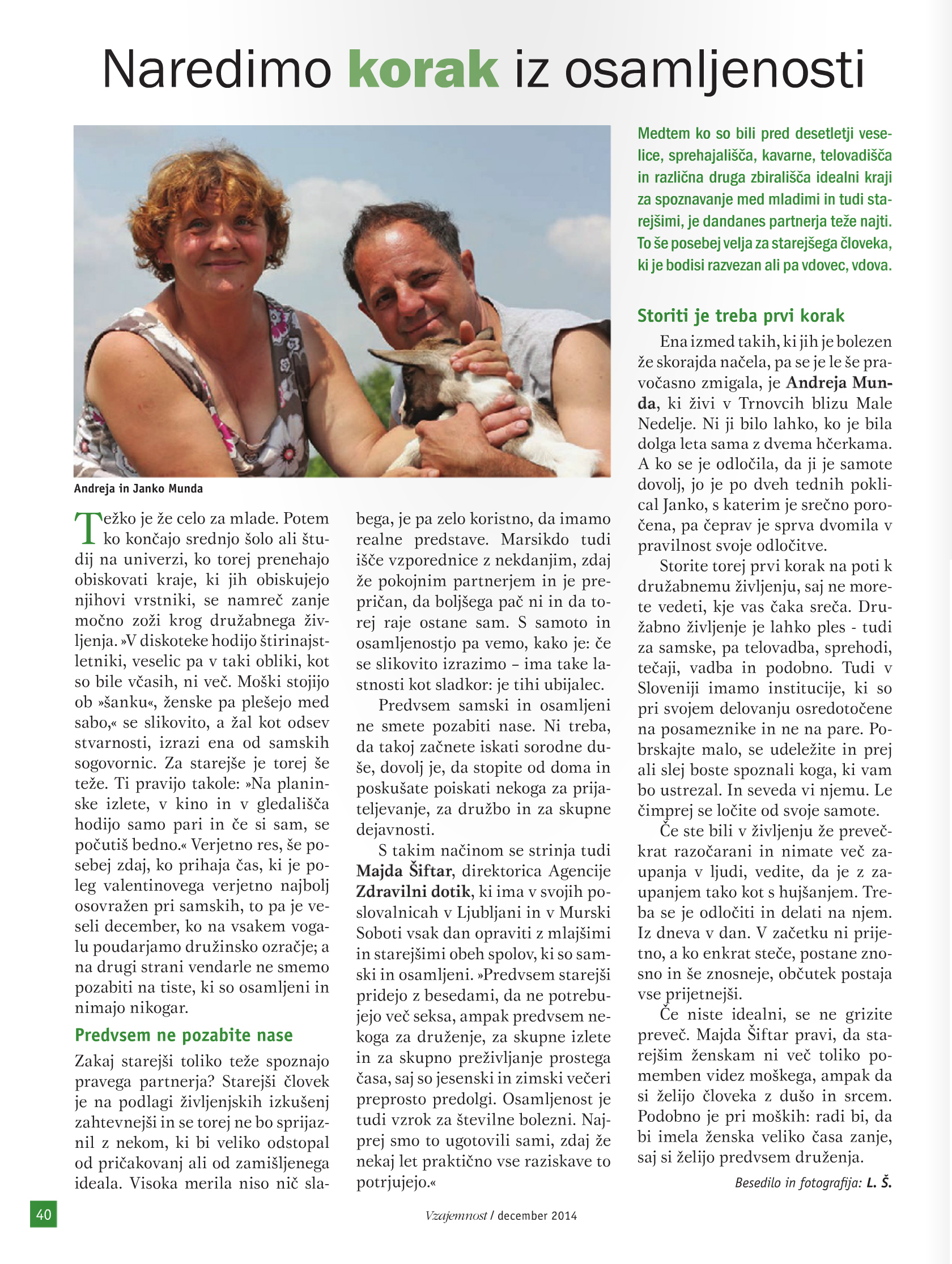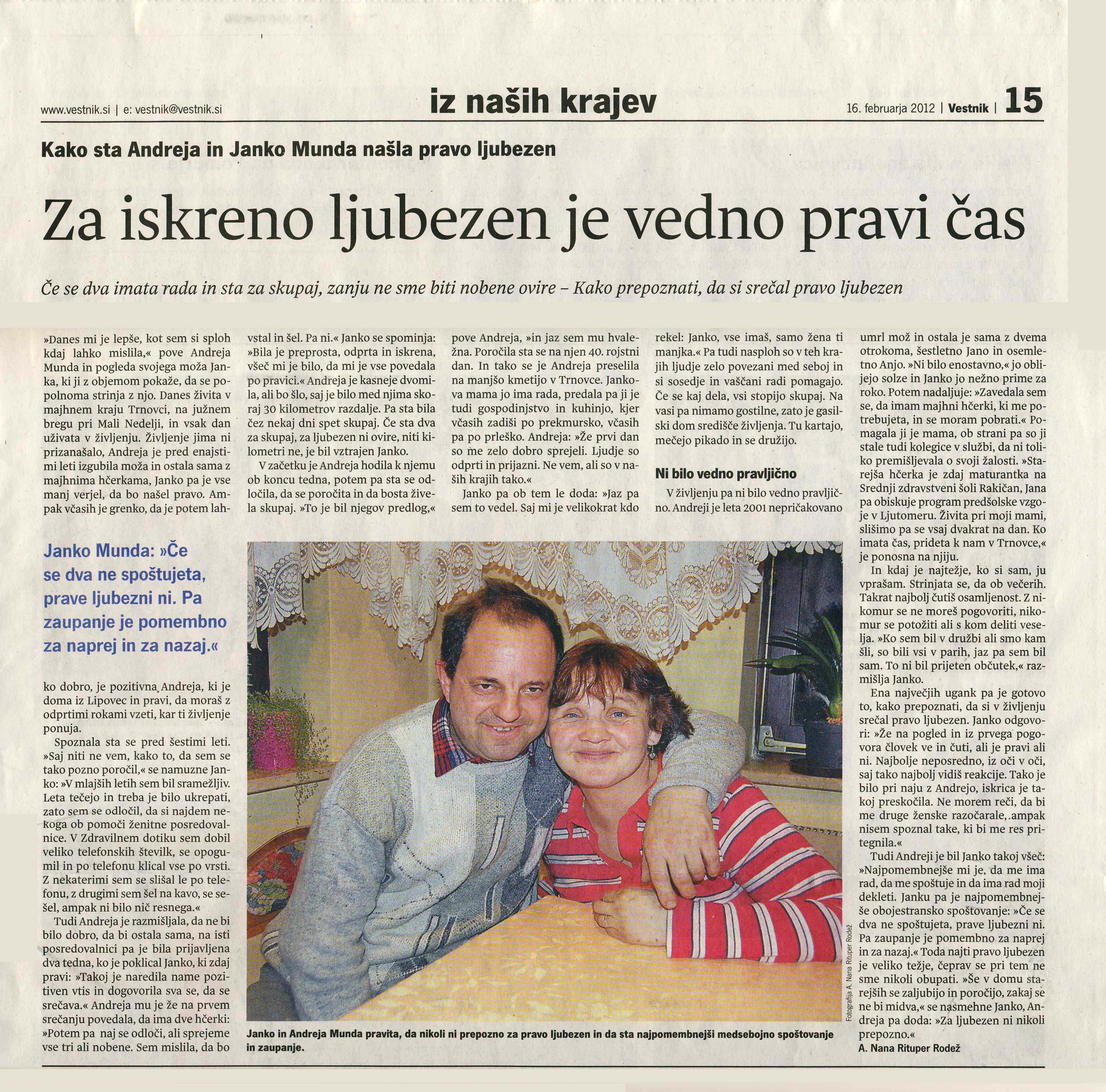 Časopis Vestnik: Za iskreno ljubezen je vedno pravi čas