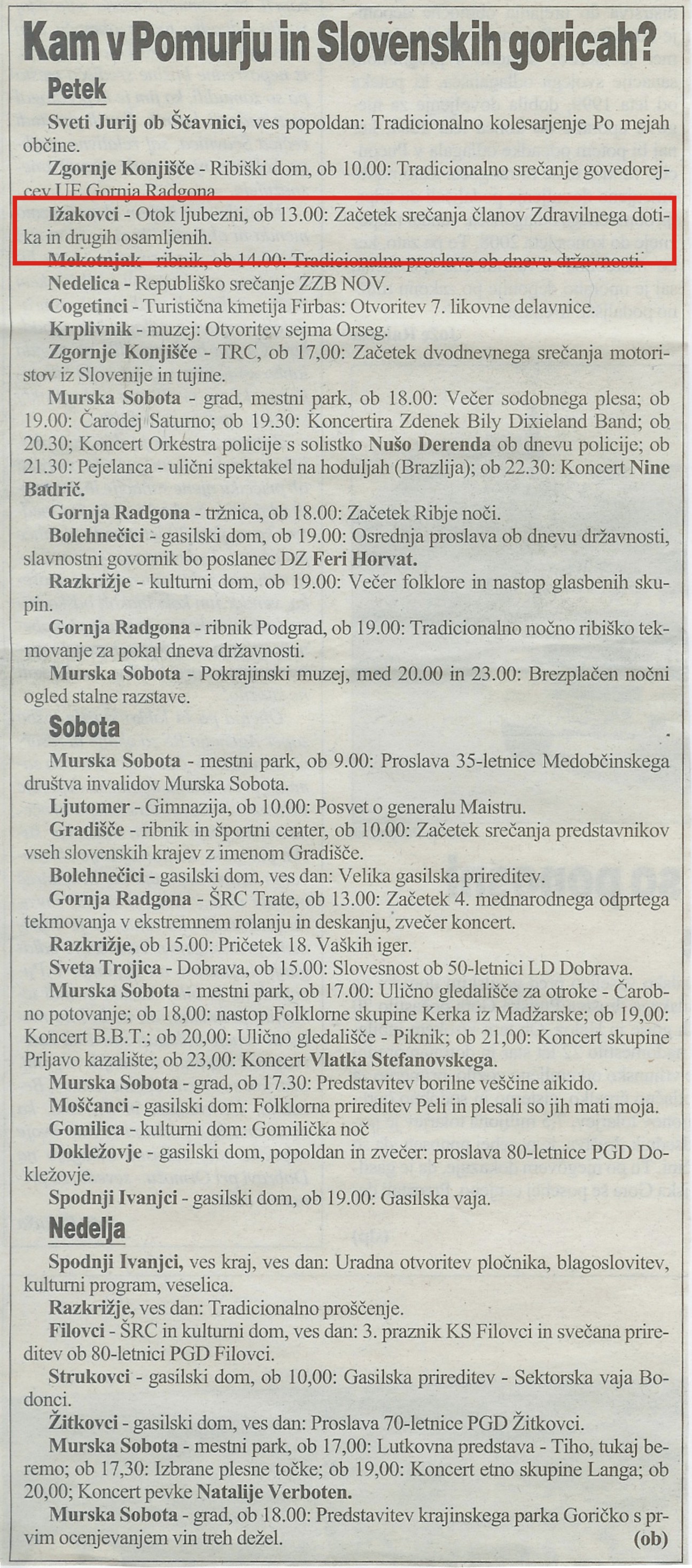 Časopis Večer: Kam ob koncu tedna v Pomurju in Slovenskih goricah
