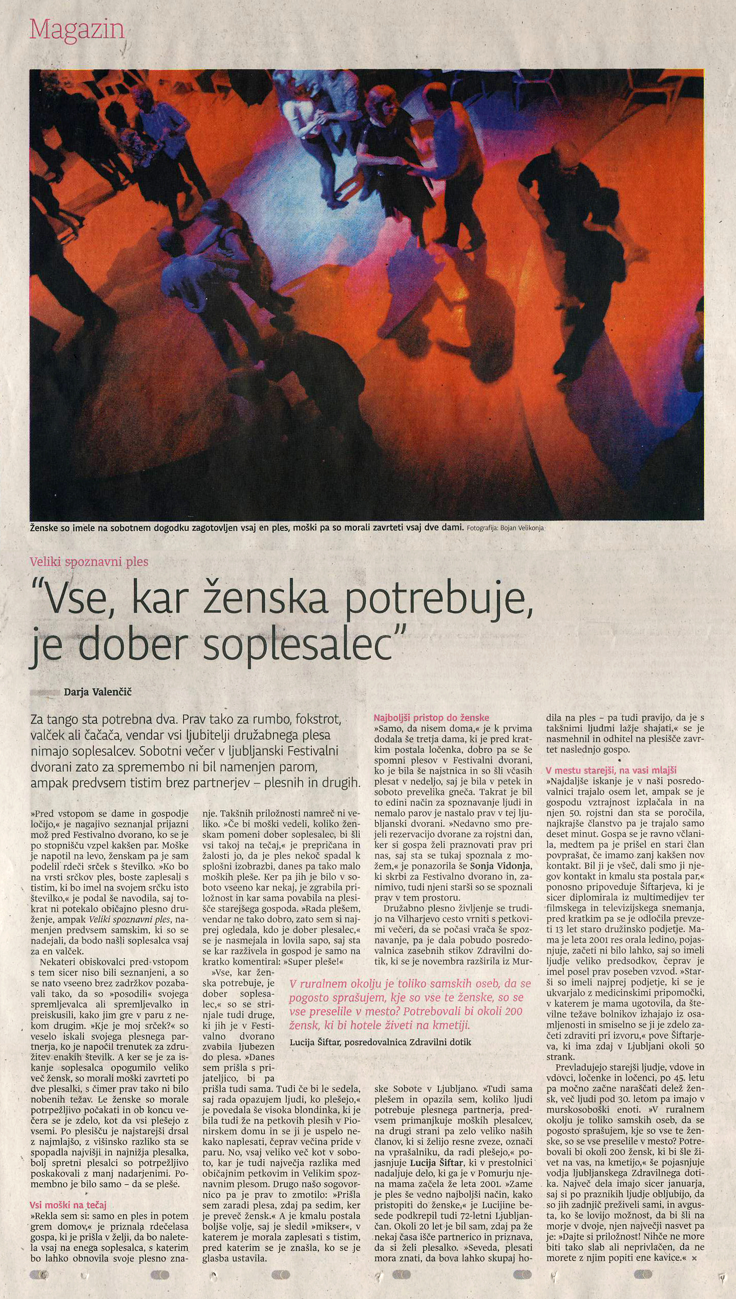 Časopis Dnevnik: "Vse kar ženska potrebuje, je dober soplesalec!"