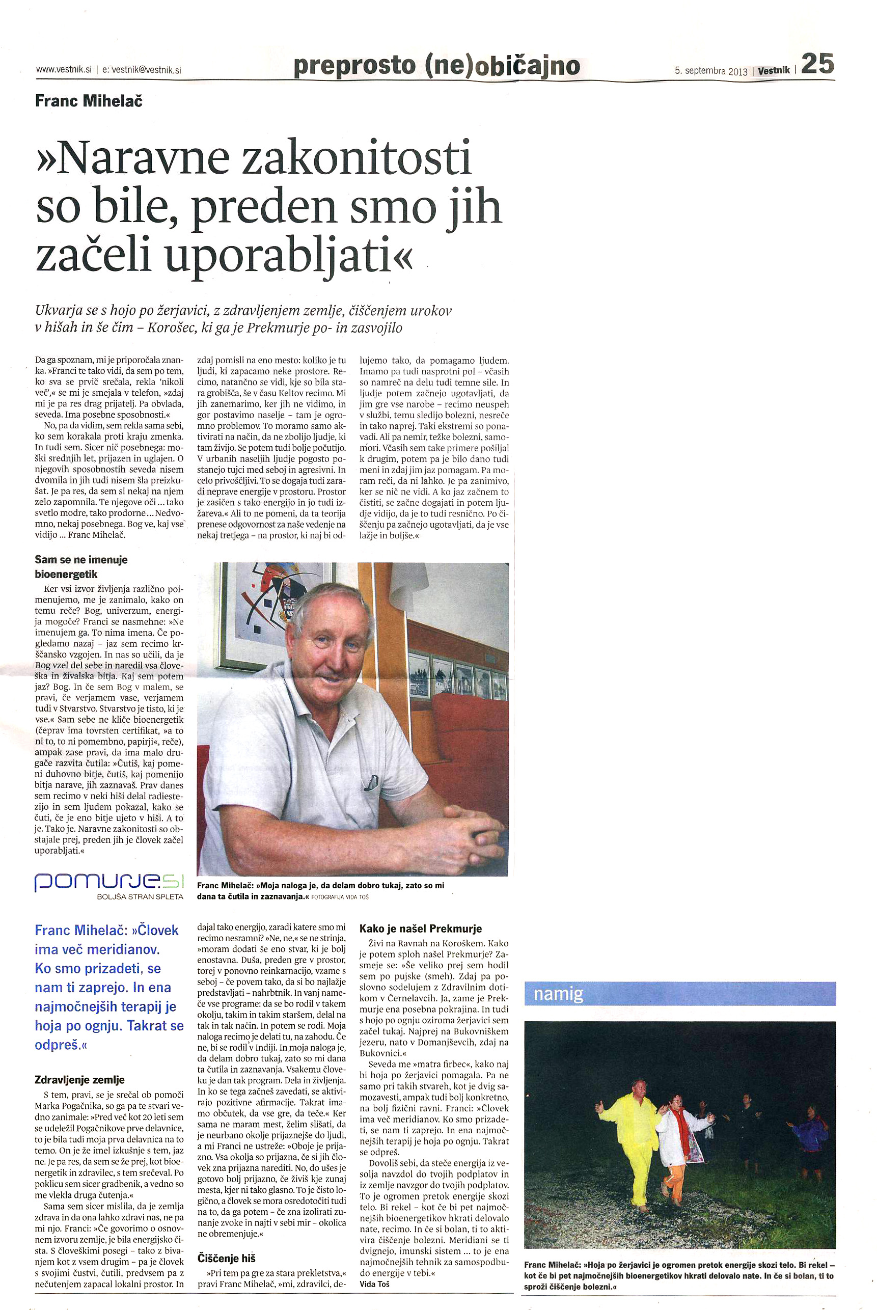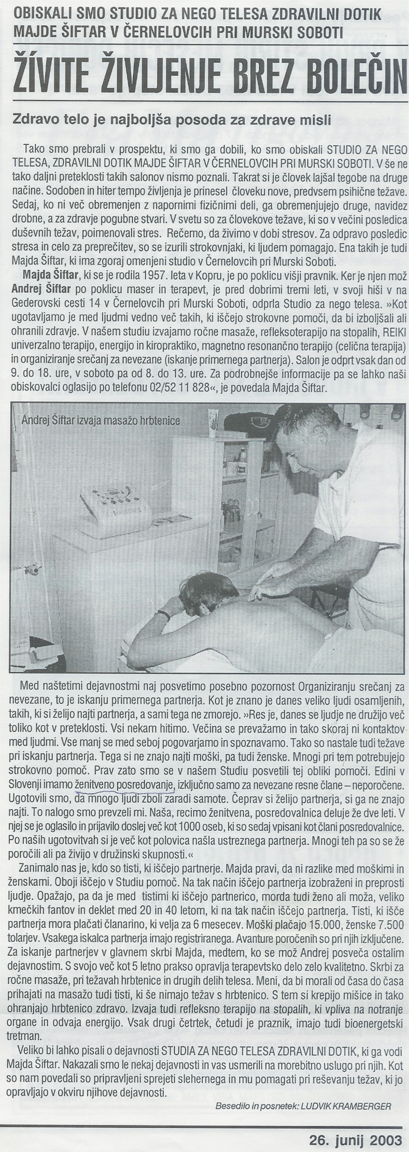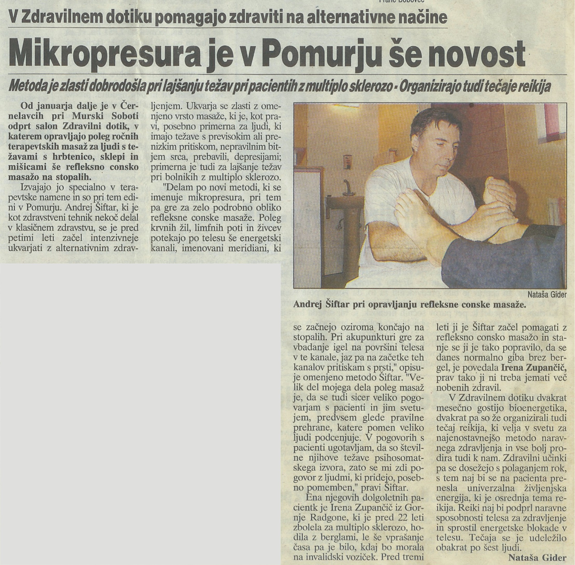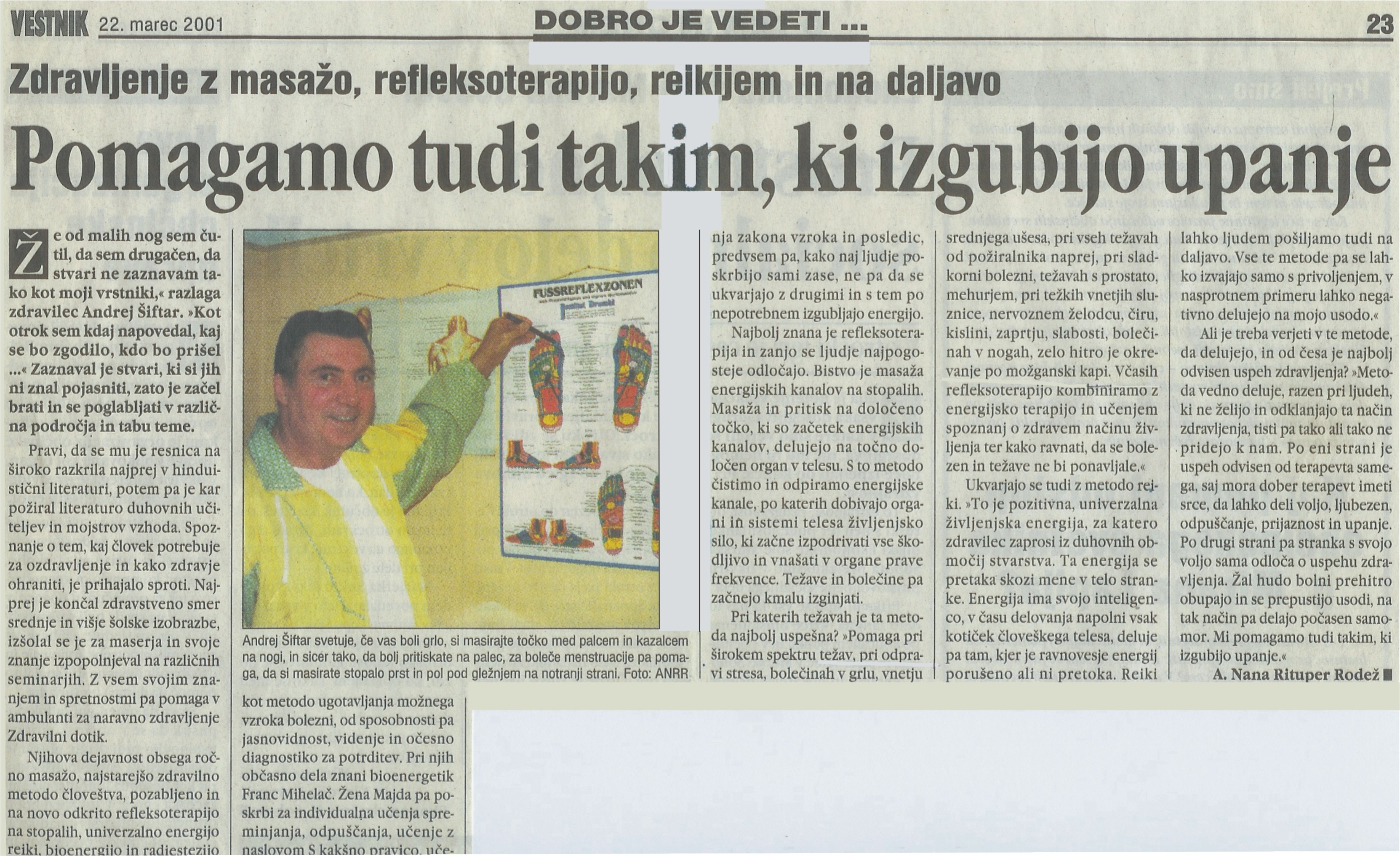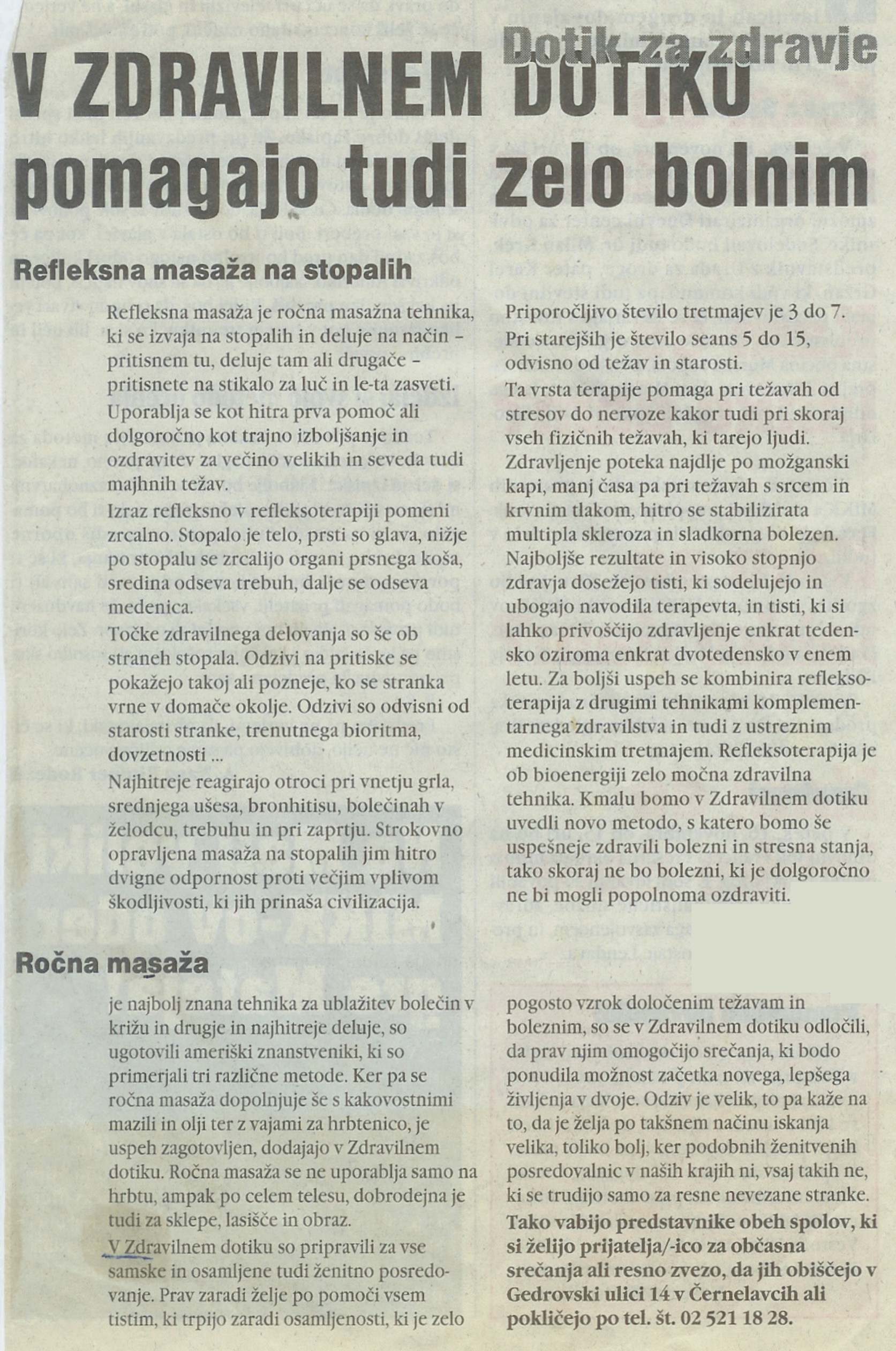 Časopis Vesnik: V Zdravilnem dotiku pomagajo tudi zelo bolnim